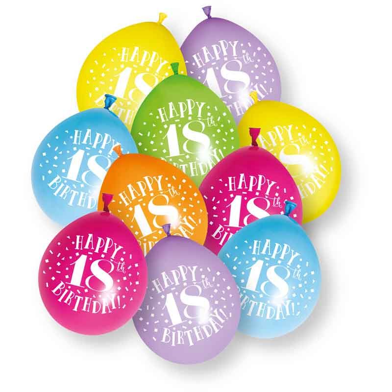 Age 18 Multicolor Birthday Balloons 10 Per Pack