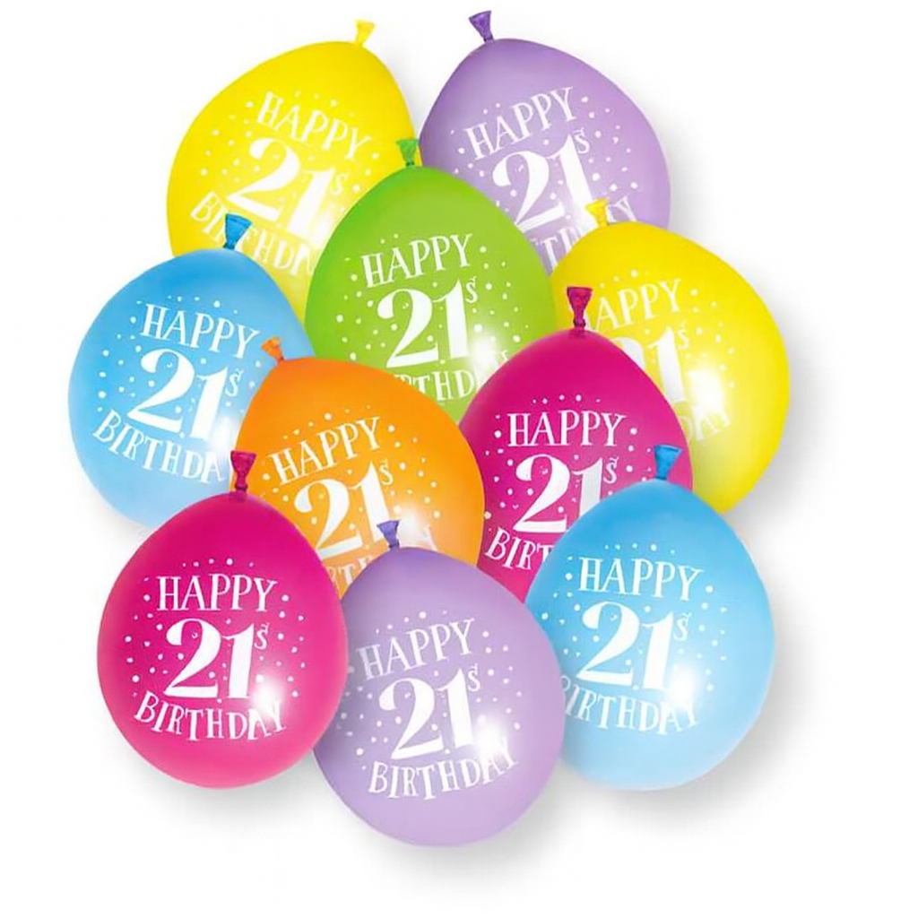 Age 21 Multicolor Birthday Balloons 10 Per Pack