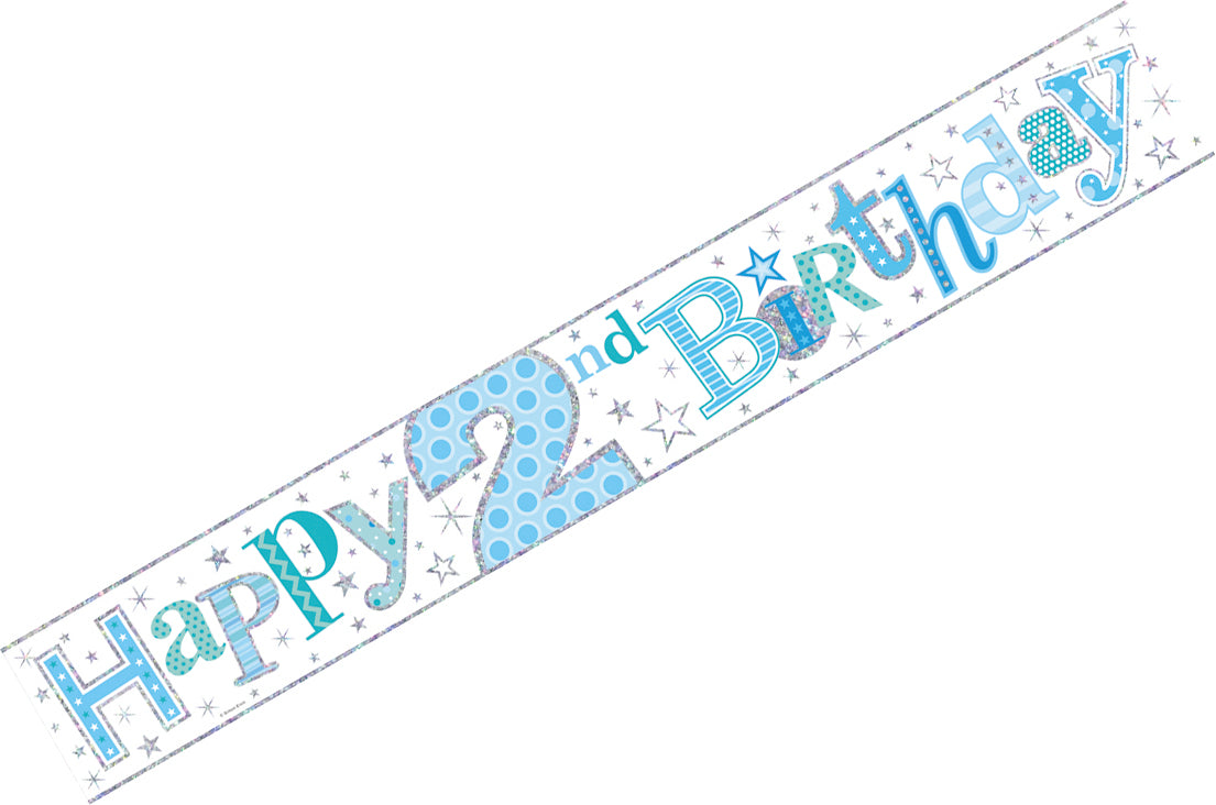 Age 2 Birthday Banner Blue And Silver Holographic Recyclable 2nd Birthday Party Banner Garland Decoration