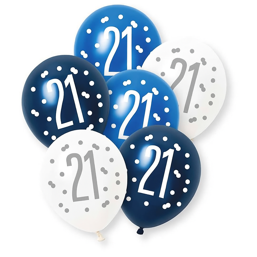 Age 21 Blue, Silver, & White Latex Balloons 21st