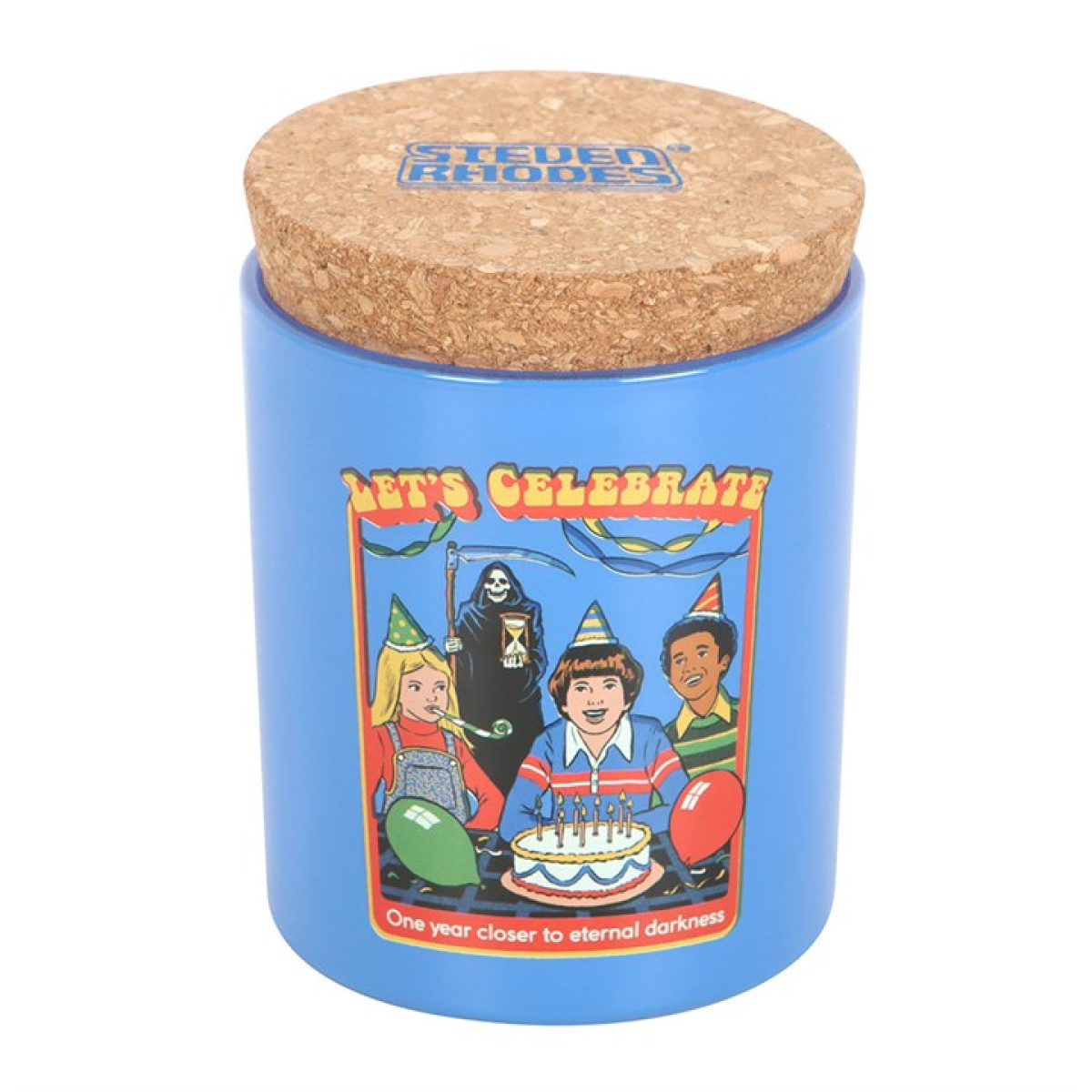 Celebrate another trip around the sun and one step closer to the void with this zesty lemon cake scented candle. Sweet, citrusy, and served with a healthy dose of existential dread. Great for birthday parties and pretending you’re happy to be there. 35-hour total burn time. Paraffin wax. Officially licensed Steven Rhodes product.